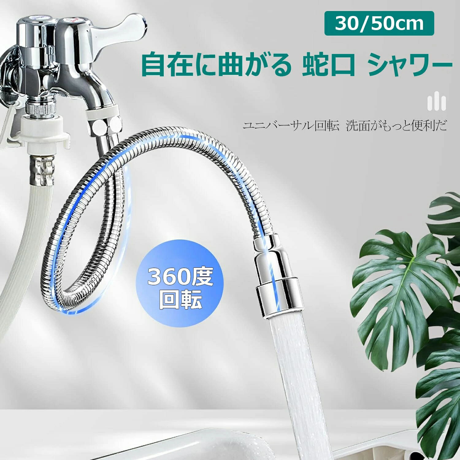 蛇口 シャワー 360度回転 ステンレス製 蛇口変換器 キッチンシャワー 水漏れ防止 取り付け簡単 キッチン 流し用蛇口 自在パイプ 2段階水流切替 節水 360度回転 泡沫器 水はね防止 首振り蛇口シャワーヘッド 冷熱通用 アダプター付き 台所 アパート 家庭用 12/15/20/30/50CM