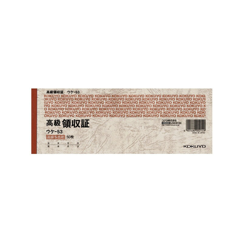 コクヨ 高級領収証 小切手判ヨコ型 ヨコ書 高級多色刷 50枚 ウケ-53 メール便対応(4個まで) 4901480002149