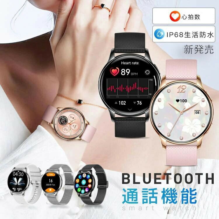 スマートウォッチ レディース メンズ 腕時計 通話機能 日本製センサー スマートブレスレット おしゃれ 日本語 ios android 歩数計 心拍計 計測 健康管理 モニター LI SNS 運動記録