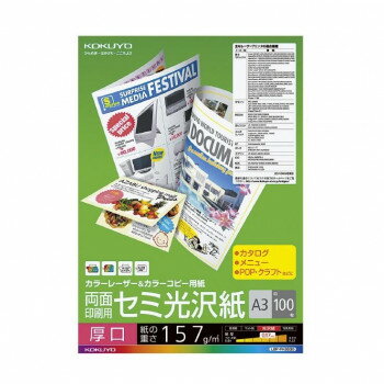 コクヨ カラーレーザー&カラーコピー用紙 厚口 両面印刷用 セミ光沢紙 100枚 A3 LBP-FH3830【お寄せ品、返品キャンセル不可。欠品終売時連絡あり】