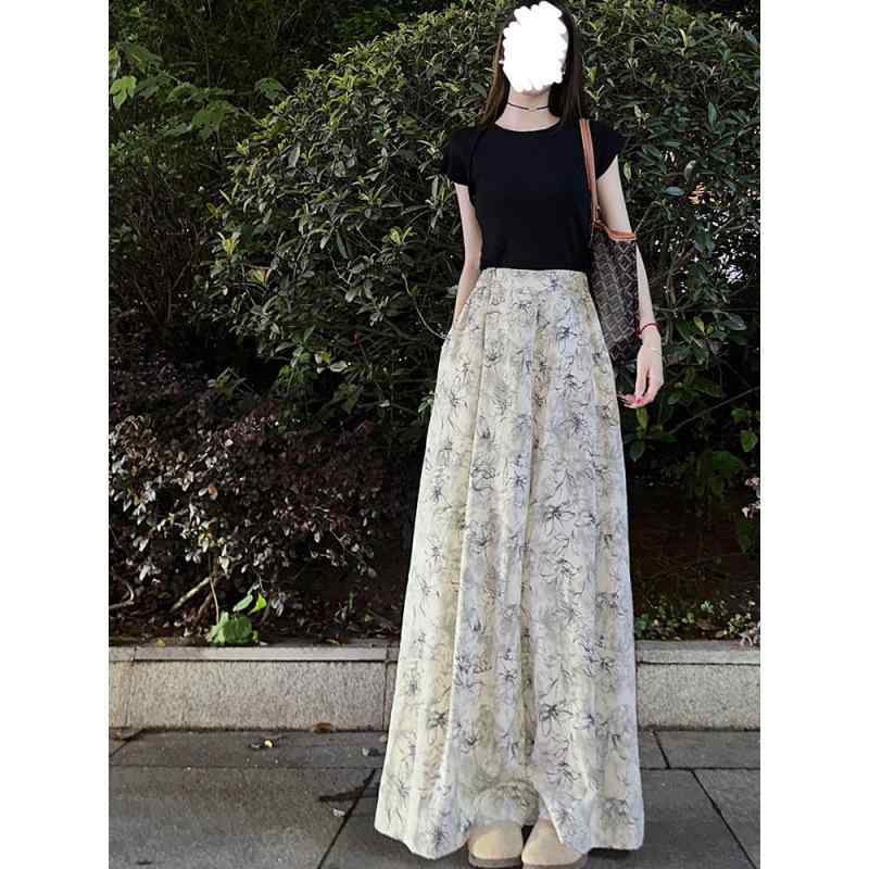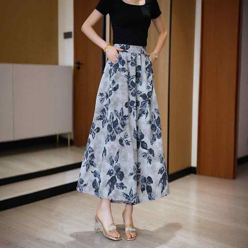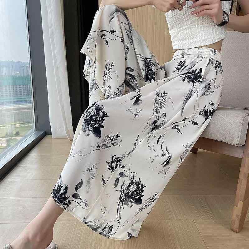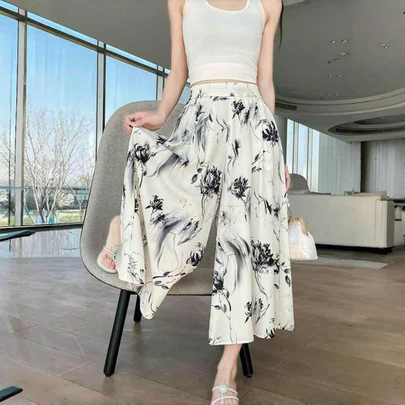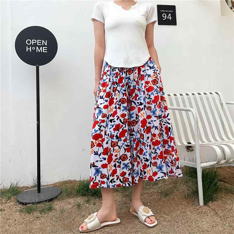 スカート レディース ワイドレッグパンツ 高腰 プリント柄 ポリエステル 7分丈 キュロットパンツ