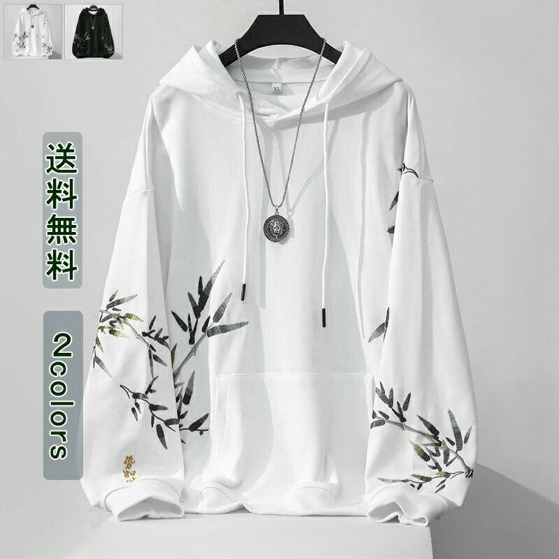 竹 刺繍 裏起毛パーカー ゆったり オールシーズン ポケット付き ゴム袖 体型カバー フード付き スポーツウェア 学生 大人 カップル ペアルック 大人気 おしゃれ 送料無料
