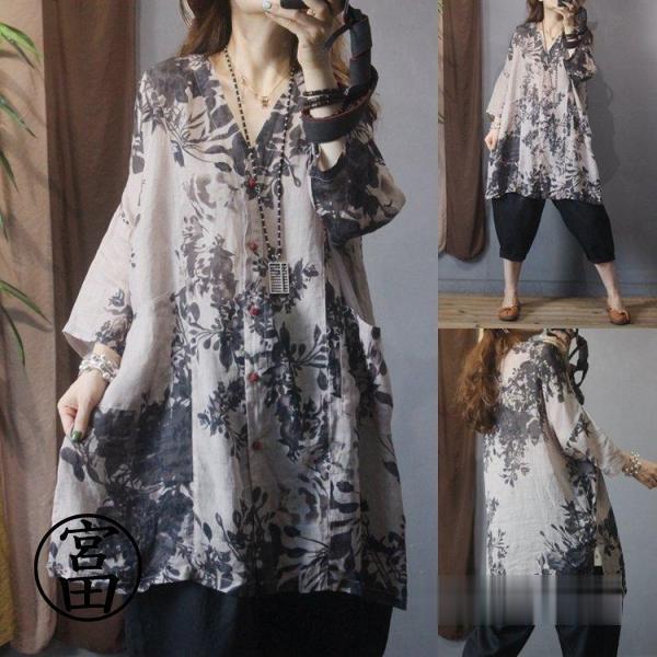 レディースファッション ロング シャツ ブラウス ボタニカル