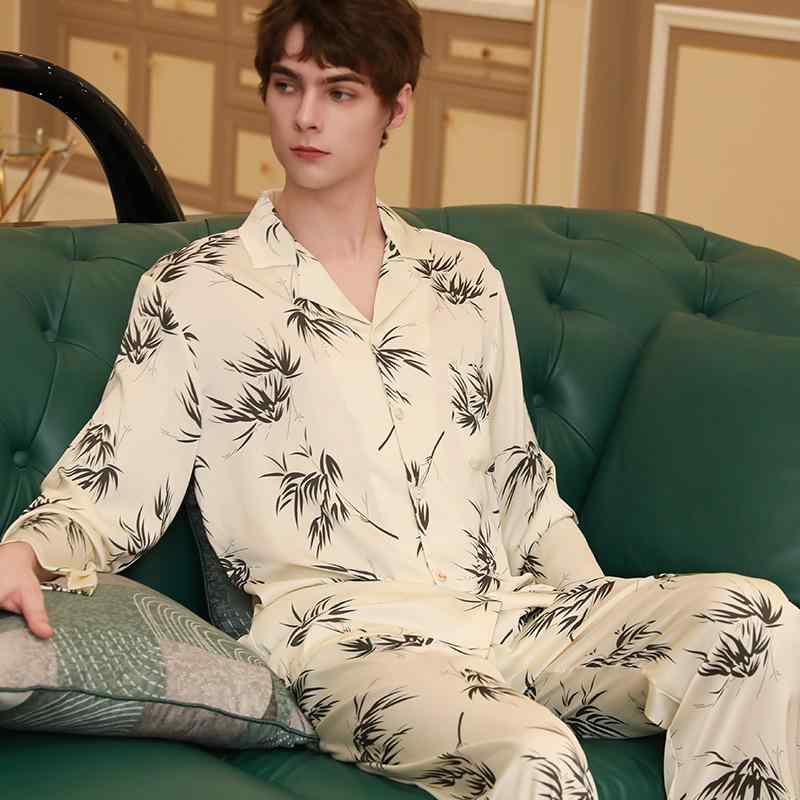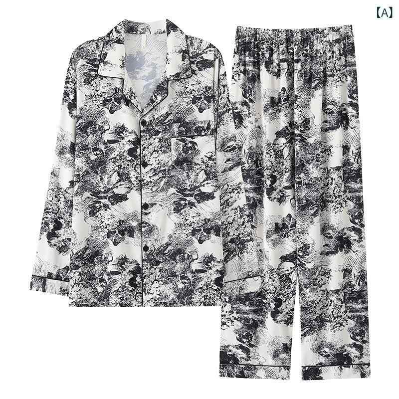 おしゃれ 肌に優しい 快適 メンズ パジャマ 上下 メンズ パジャマ 春秋 冷感 長袖 2025 民族 風 水墨 画 シルク ホームウェア スーツ