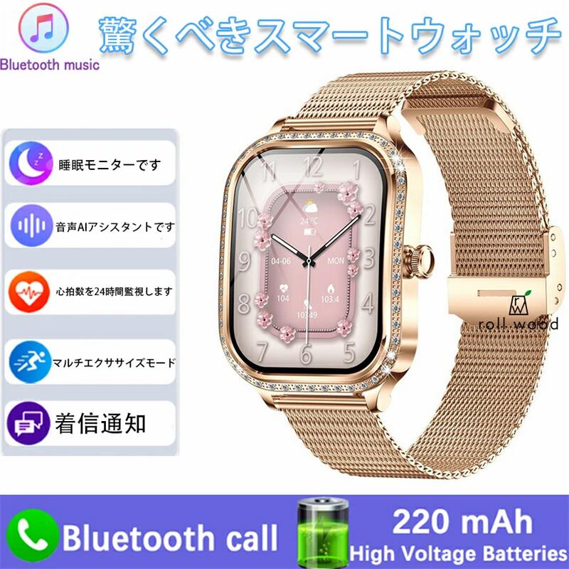 スマートウォッチ「高級感満々&超おしゃれ」 通話機能 レディース 腕時計 ビジネススマートウォッチ スマートブレスレット 日本語 日本製チップ ios android 歩数計 心拍計 計測 健康管理 モニター 運動記録 着信通知 音楽 クリスマス プレゼント 新年 誕生日 プレゼント