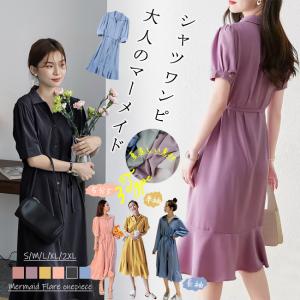 爆売 シャツワンピース Aライン ロング マキシワンピース マーメイドライン 体型カーバー エレガント 半袖 五分袖 長