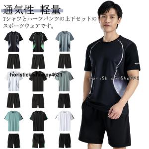 吸汗速乾 スポーツウェア メンズ 上下セット ランニングウェア 半袖 Tシャツ ハーフパンツ 2点セット スポーツウェア 薄手 トレーニングウェア 無