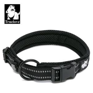 Truelove 犬 首輪 小型犬 散歩 お出かけ おしゃれ Lサイズ 幅2cm 長さ45-50cm ナイロン ソフトパッド 3M反射素材 ブラック TLC5011-BK-L ◆宅
