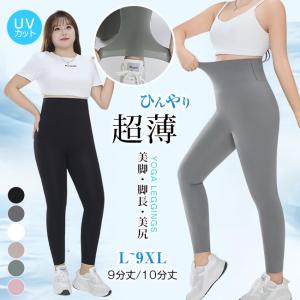 爆売 ヨガウェア 9分丈/10分丈クールレギンス 接触冷感 ひんやり 9XL スパッツ ハイウエスト 日焼け対策 ペチパンツ シルキー 大きいサイズ