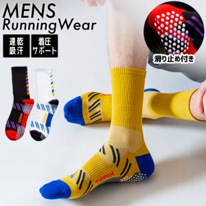 ランニングソックス 2足セット ミディアム丈 コンプレッション設計 滑り止めゴム付き 通気性メッシュ 靴ズレ予防 メンズ レディース スポーツソックス