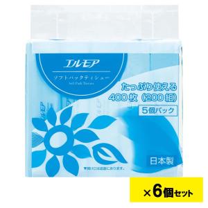【欠品中:1月中旬以降入荷予定】エルモア ソフトパックティシュー 400枚(200組) 5個パック 6個セット