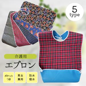 介護用エプロン ポケット付き 食事 高齢者 プレゼント 敬老の日 介護施設 おしゃれ 防水 女性 花柄 和柄 食べこぼし 汚れ防止 前掛け スナップボタン