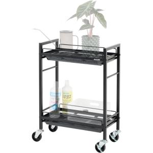 BIBILAB 水やりプランターワゴン LPA-W520-BK 水やりプランターワゴン 水受けトレー付きで水やりが楽になる キャスター付き 植物棚 2段 植物 棚
