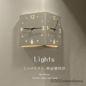 壁掛け時計 掛け時計 おしゃれ 両面コーナーデザイン サイレント 静音 クオーツ時計 軽量 個性的 シンプル オシャレ モダン インテリア適合 見やすい文字盤