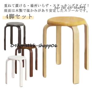4脚セット 丸椅子 木製 椅子 曲脚 イス 直径30cm 高さ約45cm ナチュラル ブラウン ブラック ホワイト スタッキング チェア 曲げ脚 スツ