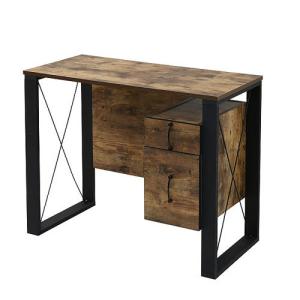 JKプラン ブルックリンスタイル デスク 引き出し パソコンデスク ワークデスク 書斎デスク(ブラックブラウン)