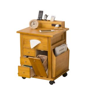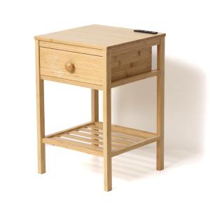 クロシオ Bamboo サイドテーブル 竹材 コンセント(1500W)付 A4書類 引き出し付 小物置き棚 軽量 シンプル 玄関 リビング 寝室 ベッドサイド スマホ置き 23561