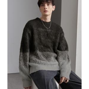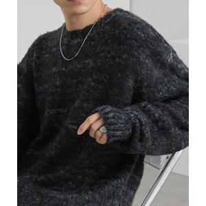 セーター ニット マルチファンクショナル 配色モールヤーン ラグランスリーブ オーバーサイズ クルーネックニット/アンチピリング・マシンウォッシャブル