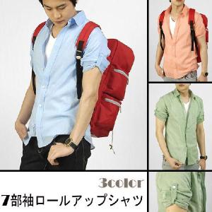七分袖 ロールアップ 綿・麻混紡 シャツ 3色 hd101