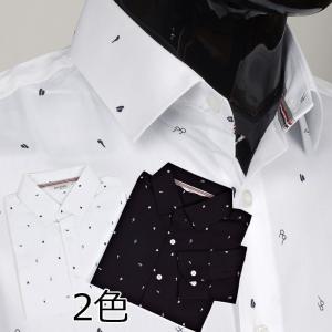ドレスシャツ メガネ ハット タバコパイプ メンズアイテム 伸びる生地 長袖 ワイシャツ スリムライン ネイビーとホワイト 2色