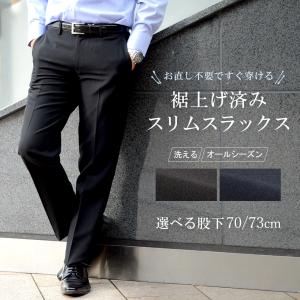 スラックス 裾上げ済み ノータック スリム メンズ ウォッシャブル 洗える 春夏秋冬 レングス仕上げ ビジネス カジュアル レングス 裾上げ不要
