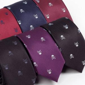 ネクタイ スリム ナロータイ スカル 骸骨 パターン デザイン 黒、ネイビー レッド パープル系の6色 大剣幅6cm