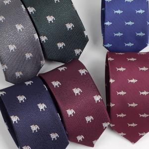 ネクタイ スリム ナロータイ いぬ・ブルドッグ、サメ 生き物 パターン デザイン グレー、ブルー、レッドワイン、グリーン系の 6種 大剣幅6cm