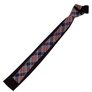 ネクタイ ネイビーブルー&レッド チェック柄・レイヤード、スクエアネクタイ・ナロータイ 珍しいデザイン 綿・コットンタッチ、マット