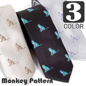 ネクタイ メンズ おさる モンキー 猿柄 パターン かわいい おしゃれ ビジネス ナロータイ スリム デザイン 大剣幅 6cm 送料無料 3色 ブラック ベージュ シルバー
