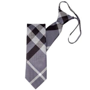 ワンタッチネクタイ チェック柄 グレー色 大剣幅 7cm スリム、ナローネクタイ メンズ ロック有り ジッパー仕様 装着簡単 ジッパー ストッパー付き