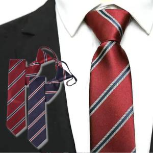 ワンタッチネクタイ スリム コンパクトサイズ ロック有り ジッパー仕様 装着簡単 ネクタイ ストッパー付き ストライプ クラウン パターン等 24柄