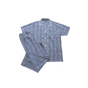 送料無料!暑い夏もサラッと爽やかに! メンズ パジャマ 【夏】半袖・長ズボン チェック柄 先染めサッカー綿100% M・L ルームウェア ナイトウェア パイピング仕