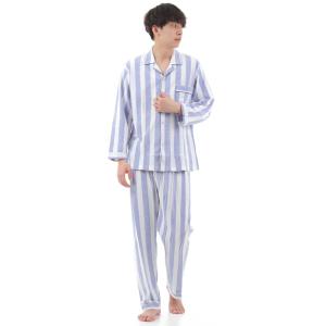 メンズ パジャマ 【春・夏】 紳士 長袖・長ズボン ゴム取り換え口付き 綿100% 布帛生地 ストライプ柄 ブルー・グレー M・L ルームウェア ナイトウェア 疲労