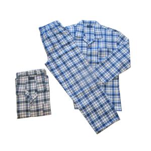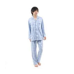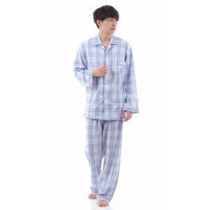 メンズ パジャマ 【春・夏】 紳士 長袖・長ズボン ゴム取り換え口付き 綿100% 布帛生地 格子柄 ブルー・水色 M・L ルームウェア ナイトウェア 疲労回復 安眠