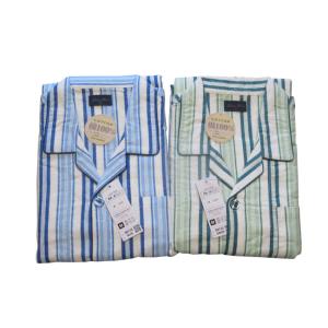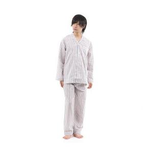 綿100%先染め素材を使用しています。 【春・夏】紳士 サッカーパジャマ長袖 ストライプ柄 ネマキ 襟付き 全開 ズボン 前開き ゴム取換え口付 父の日 お誕生日な