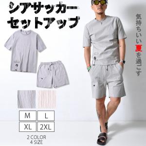 送料無料!メンズパジャマ 紳士パジャマ 【春物・夏】半袖・長ズボン 先染めサッカーポリエステル70% 綿30% M・L ルームウェア ナイトウェア パイピング仕様 胸