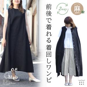 14番手リネン前後着ピンタックノースリーブワンピース 08mab ゼロハチマブ 麻100