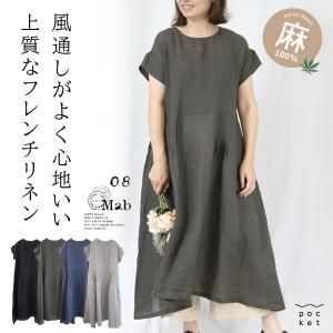 14番手リネン細ピンタック半袖ワンピース 08mab