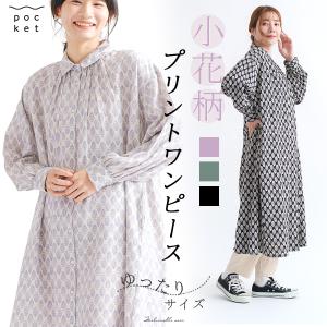 コットンコーデュロイ小花プリントウエストギャザーワンピース cloudnine