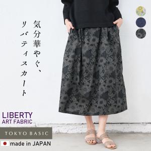 ロングスカート レディース 膝丈 40代 50代 リバティ プリント スカート 日本製 夏 春 花柄 LIBERTY ひざ丈 ロング ゴム