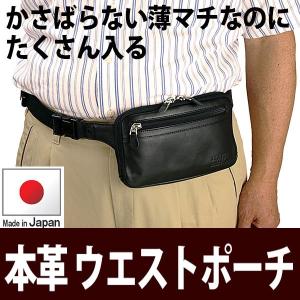 ウエストバッグ 小型 ウエストポーチ メンズ スリム ポーチ 牛革 本革 黒 ブラック色