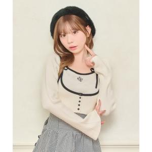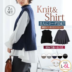 アンサンブル シャーリングギャザーリボンキャミ+ニットプルオーバーセット