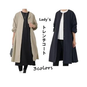 レディース トレンチコート スプリングコート 春服 バルーン袖フレアーコート ワンピース アウター 薄手 着回し力 体型カバー ゆったり おしゃれ
