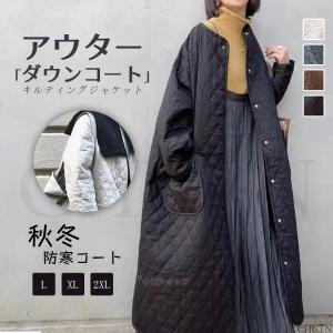 キルティングコート ノーカラージャケット アウター レディース ダウンジャケット ダウンコート ジャケット 羽織り 体型カバー 秋冬 おしゃれ LHT