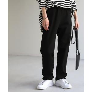 パンツ レディース 脚長 チノパン ロング ワイドパンツ ストレート ゴム 黒 白 ベージュ