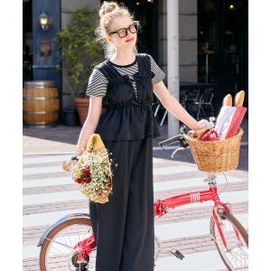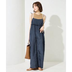 サロペット オーバーオール 「3サイズ展開」きれいめツイルワイドキャミサロペット レディース