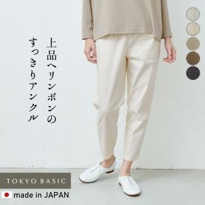 テーパードパンツ レディース 40代 50代 コットン100% しっかり厚手 ヘリンボン アンクルパンツ 日本製