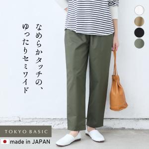 テーパードパンツ レディース なめらかコットン100% 股上ゆったり セミワイドパンツ 日本製
