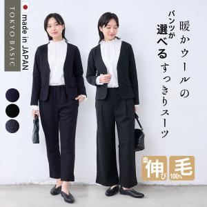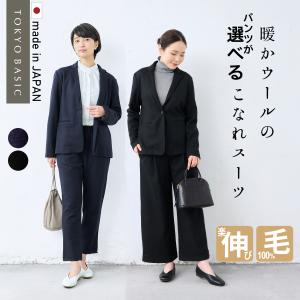 入学式 服装 ママ セレモニースーツ 卒業式 日本製 パンツスーツ 40代 50代 圧縮 ウール100% こなれ ジャケット + セミワイド パンツ 2点セット