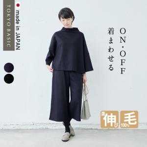 入学式 服装 ママ セレモニースーツ 日本製 卒業式 40代 50代 体型カバー 圧縮 ウール100% モックネックPO 選べるパンツ アンクルパンツorワイドパンツ